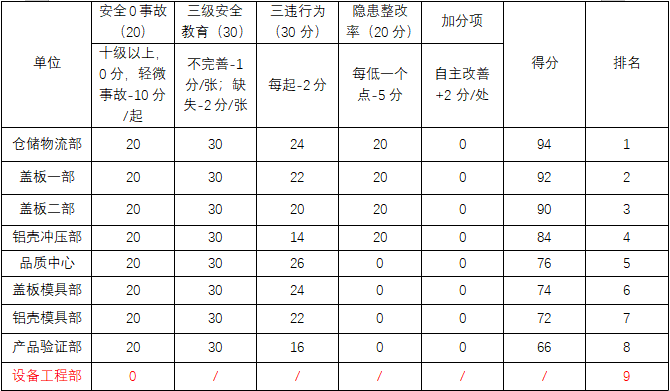 受到獎勵的單位有:蓋板制造一部、蓋板制造二部、鋁殼沖壓制造部、設備工程部、倉儲物流部、鋁殼模具部、蓋板模具部、安環(huán)部、南京盛世分公司、柳州盛世分公司。